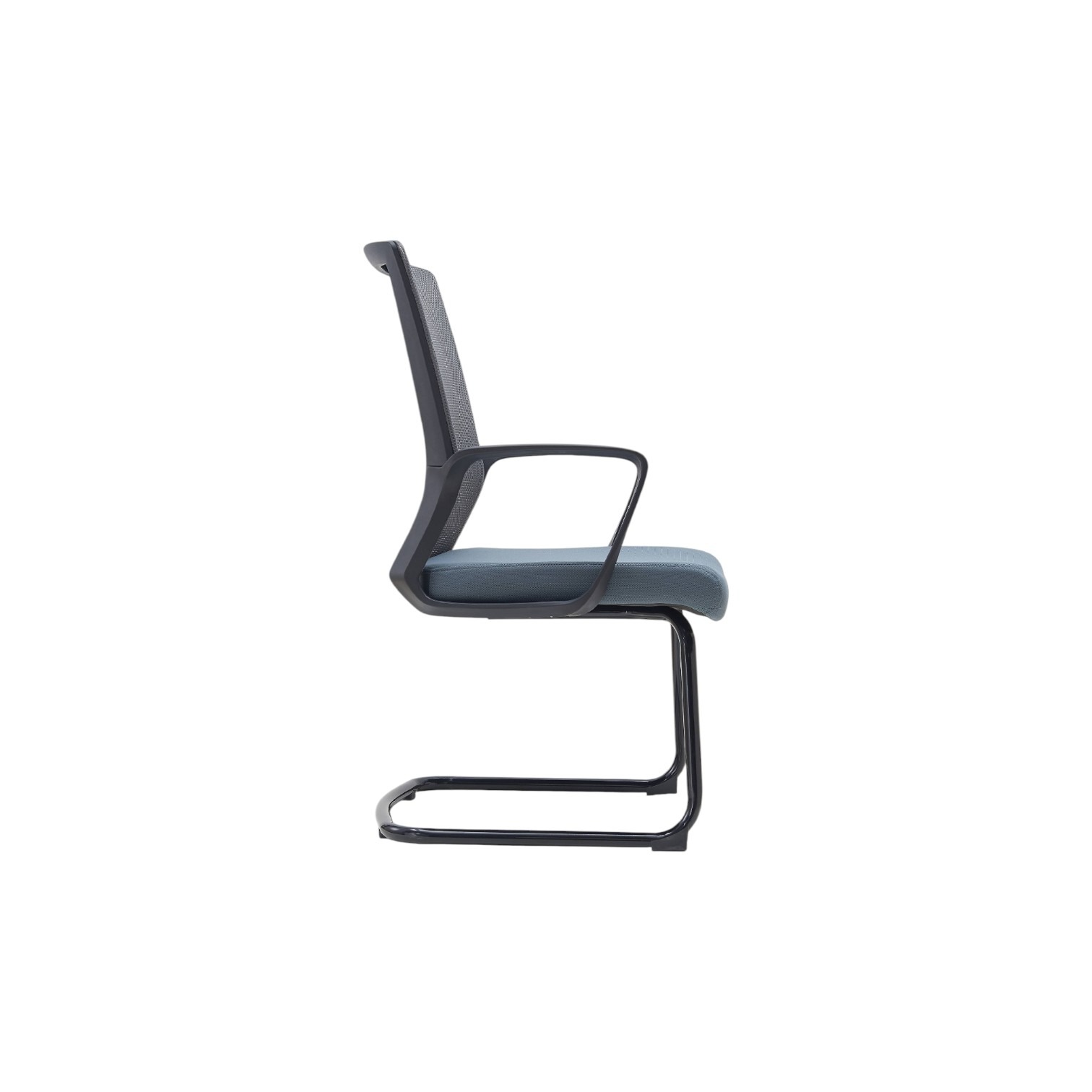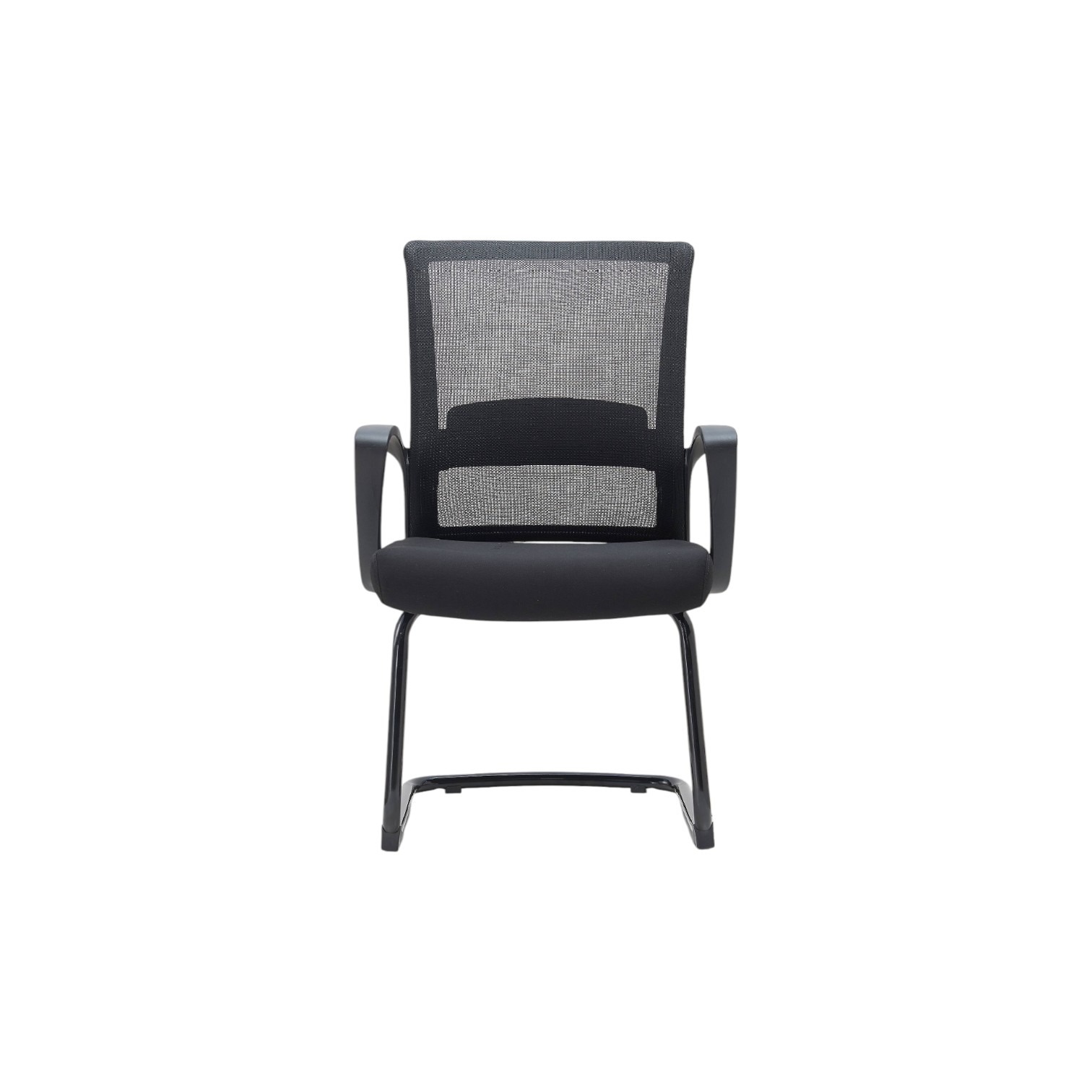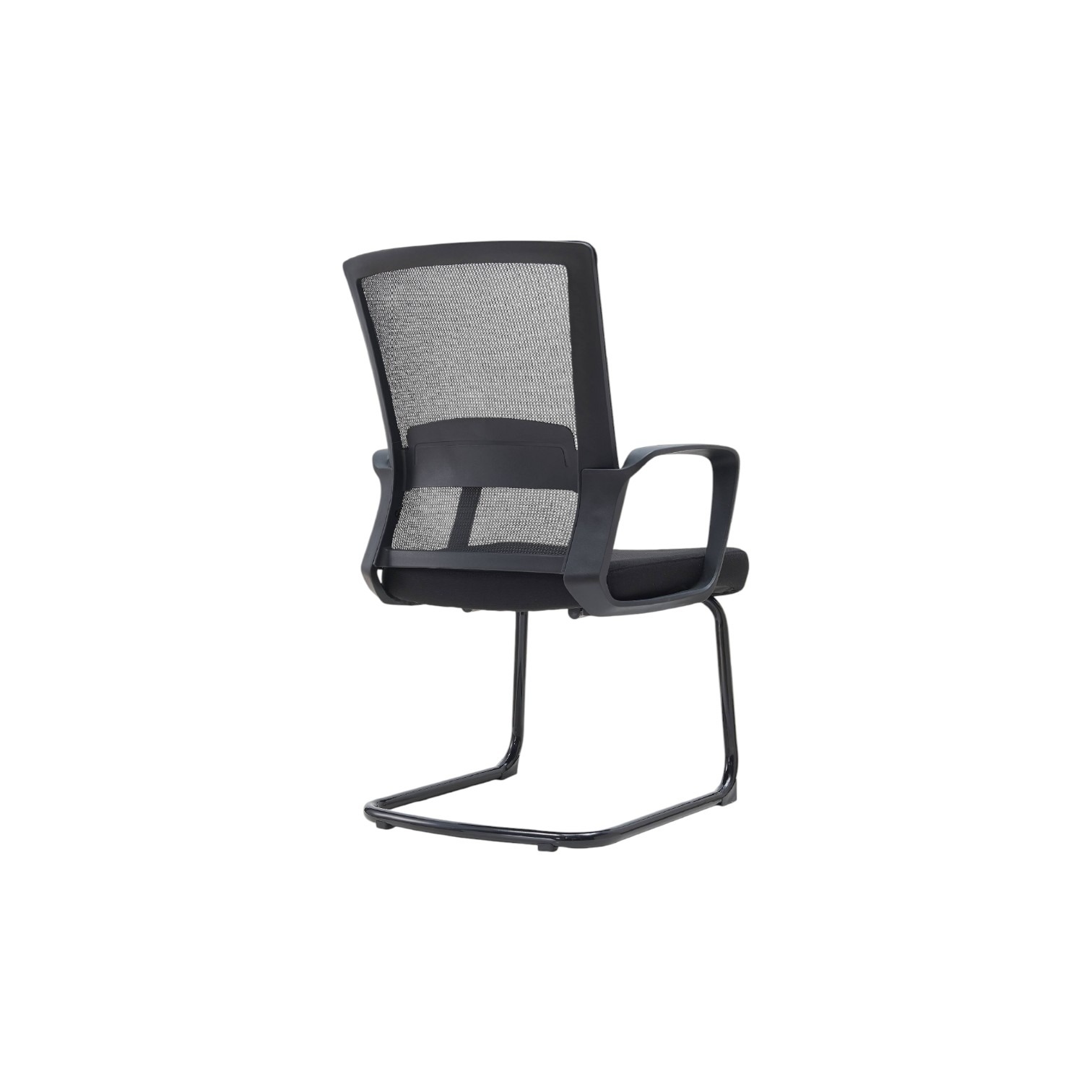Stolica dolazi sa integriranim naslonima za ruke. Stolica dolazi sa postoljem u obliku skija. Navlaka je izrađena od tkanine a stolica ima mogućnost nagiba naprijed i nazad. Stolica je crne boje.