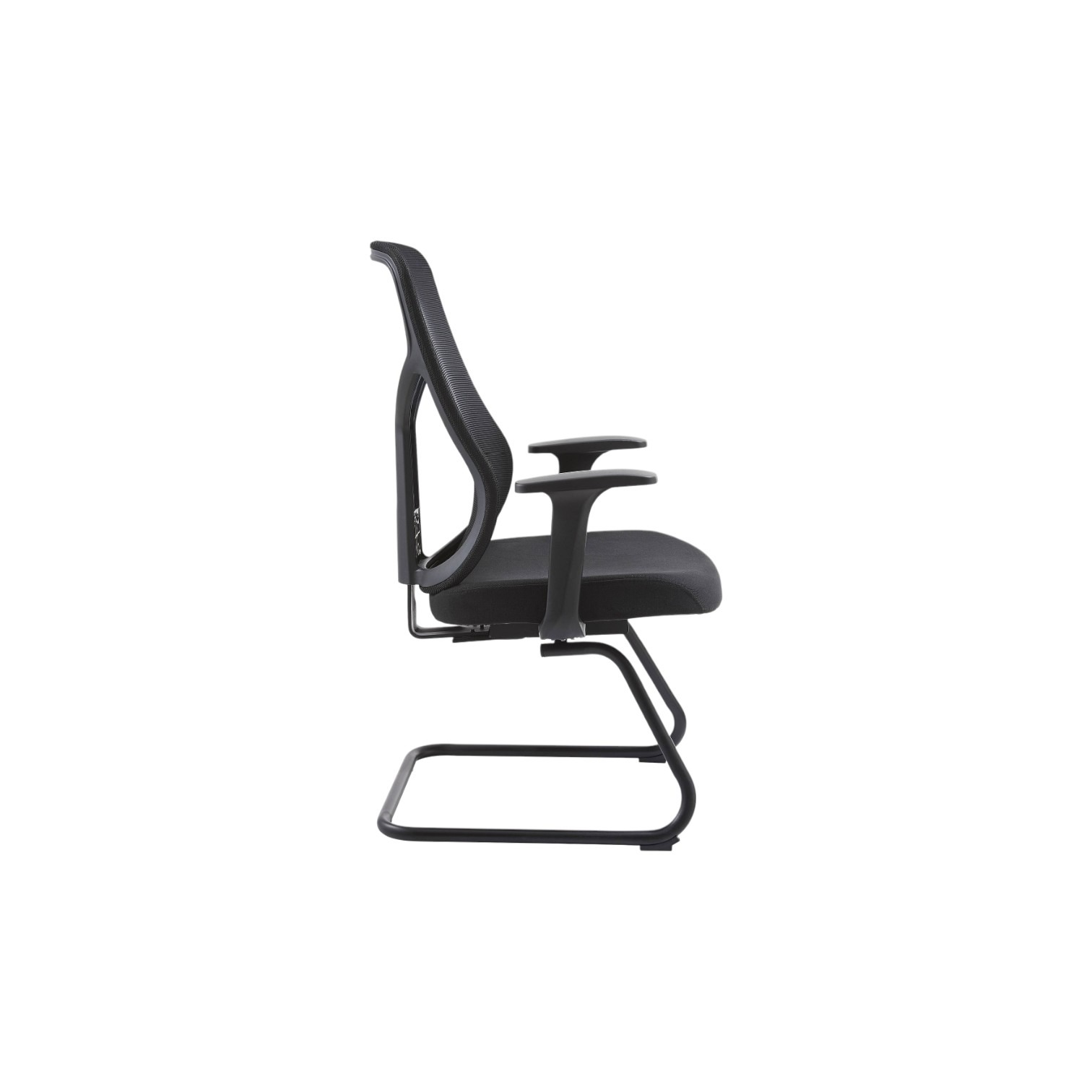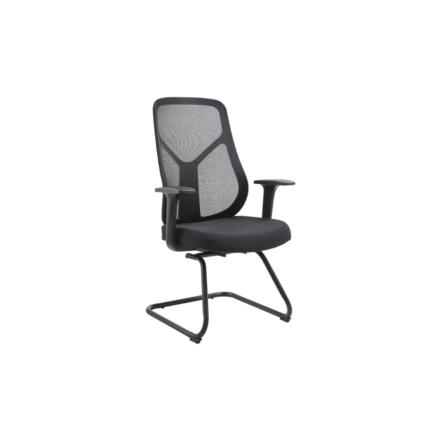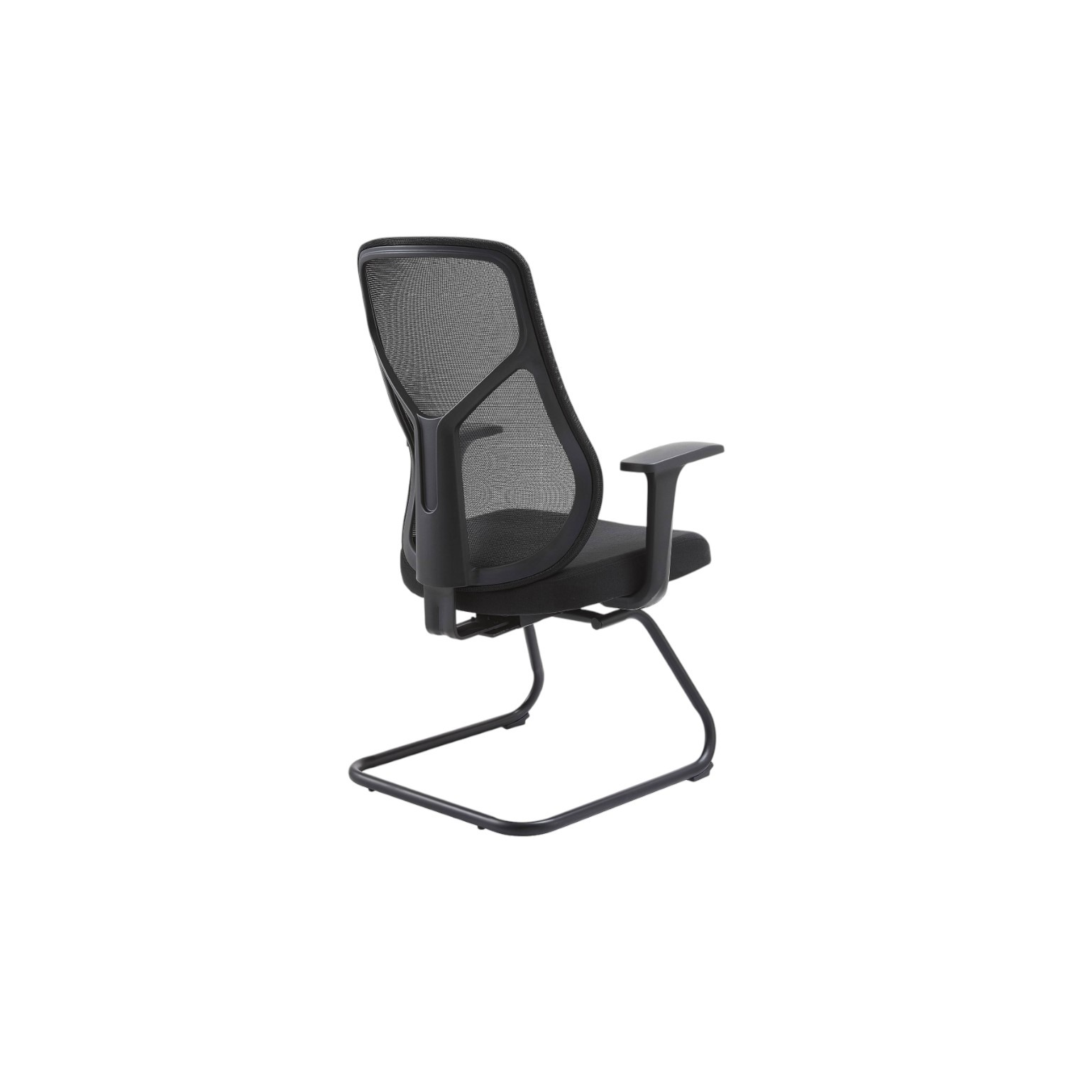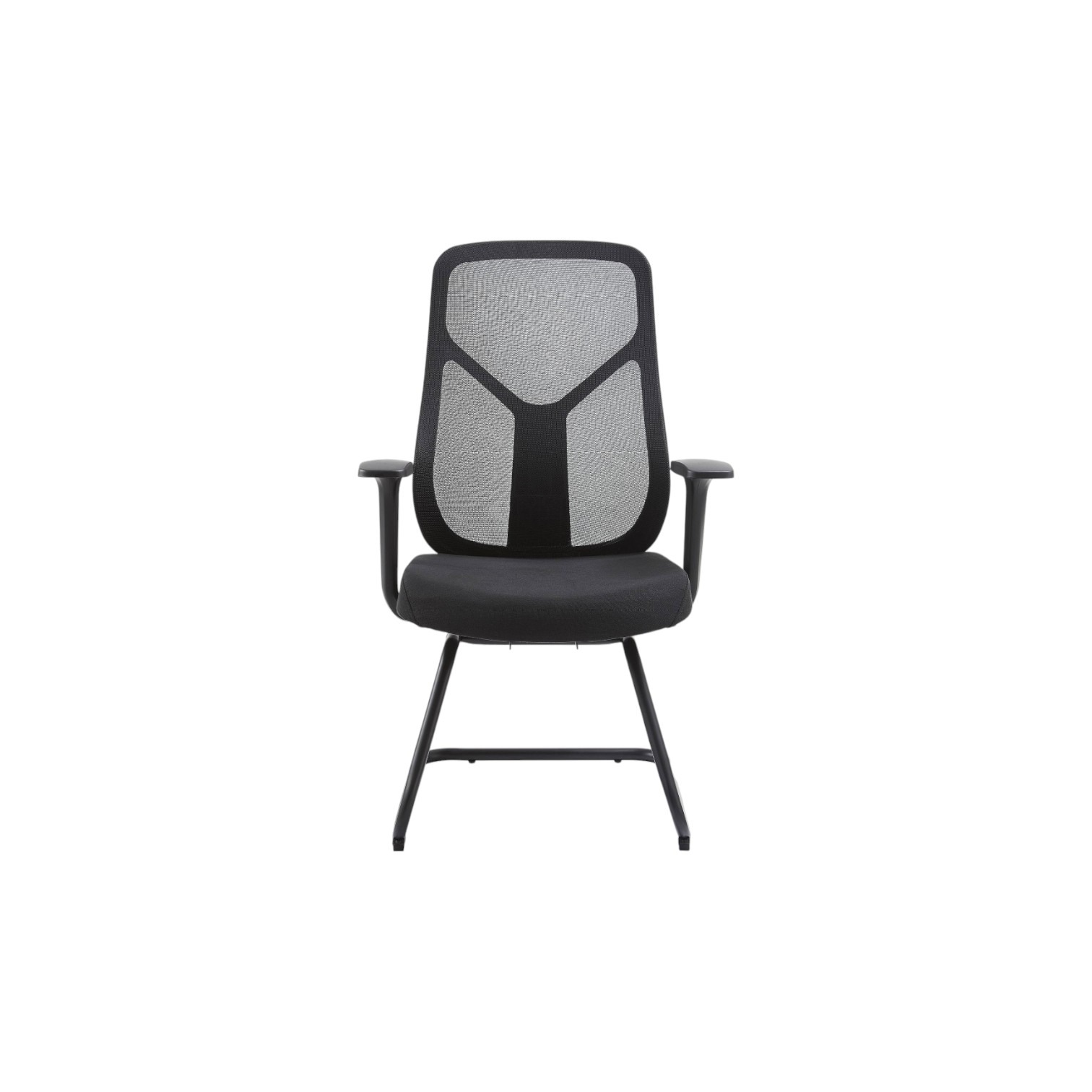 Stolica dolazi sa integriranim naslonima za ruke u obliku slova T i sa postoljem u obliku skija. Navlaka je izrađena od tkanine a stolica ima mogućnost nagiba naprijed i nazad. Stolica je crne boje.