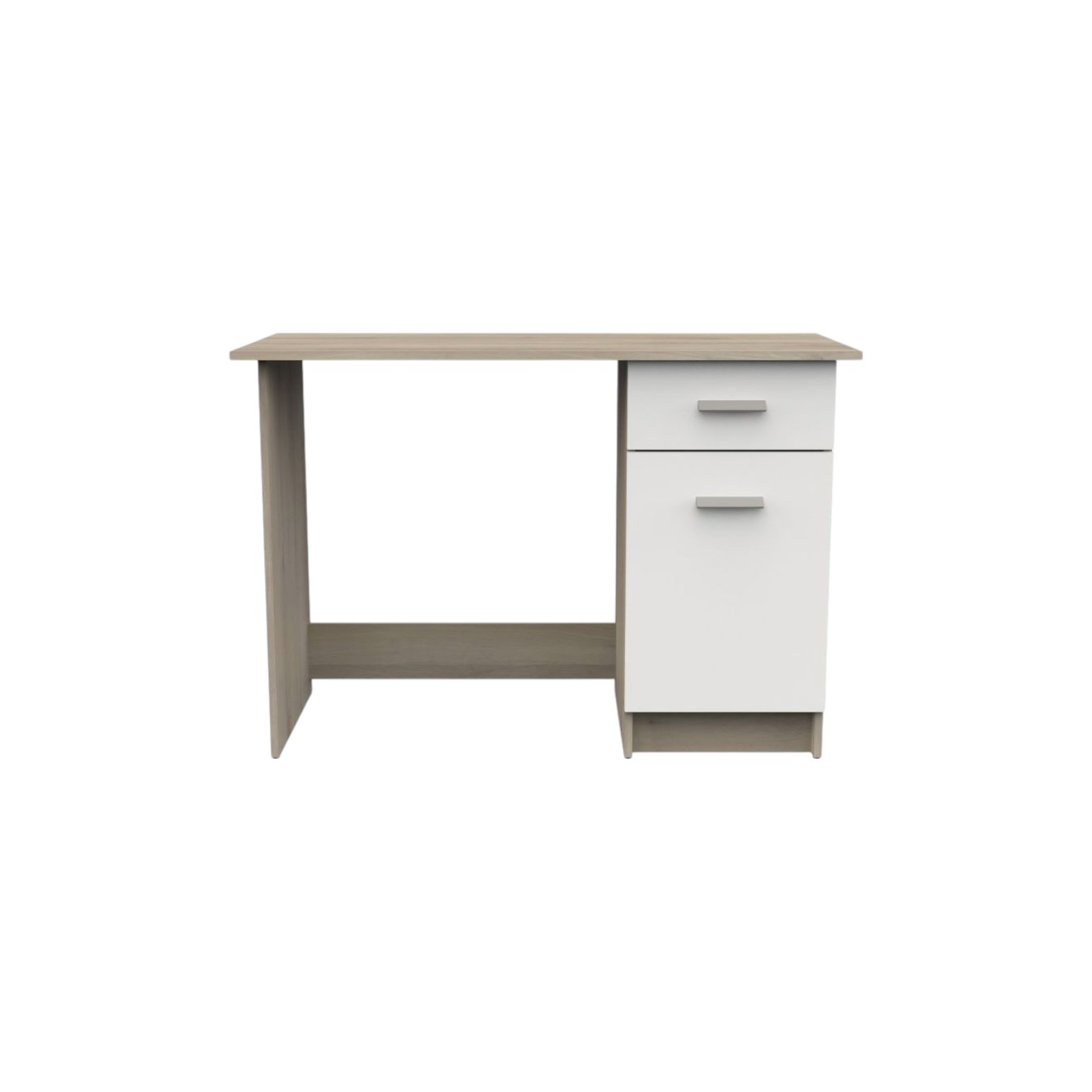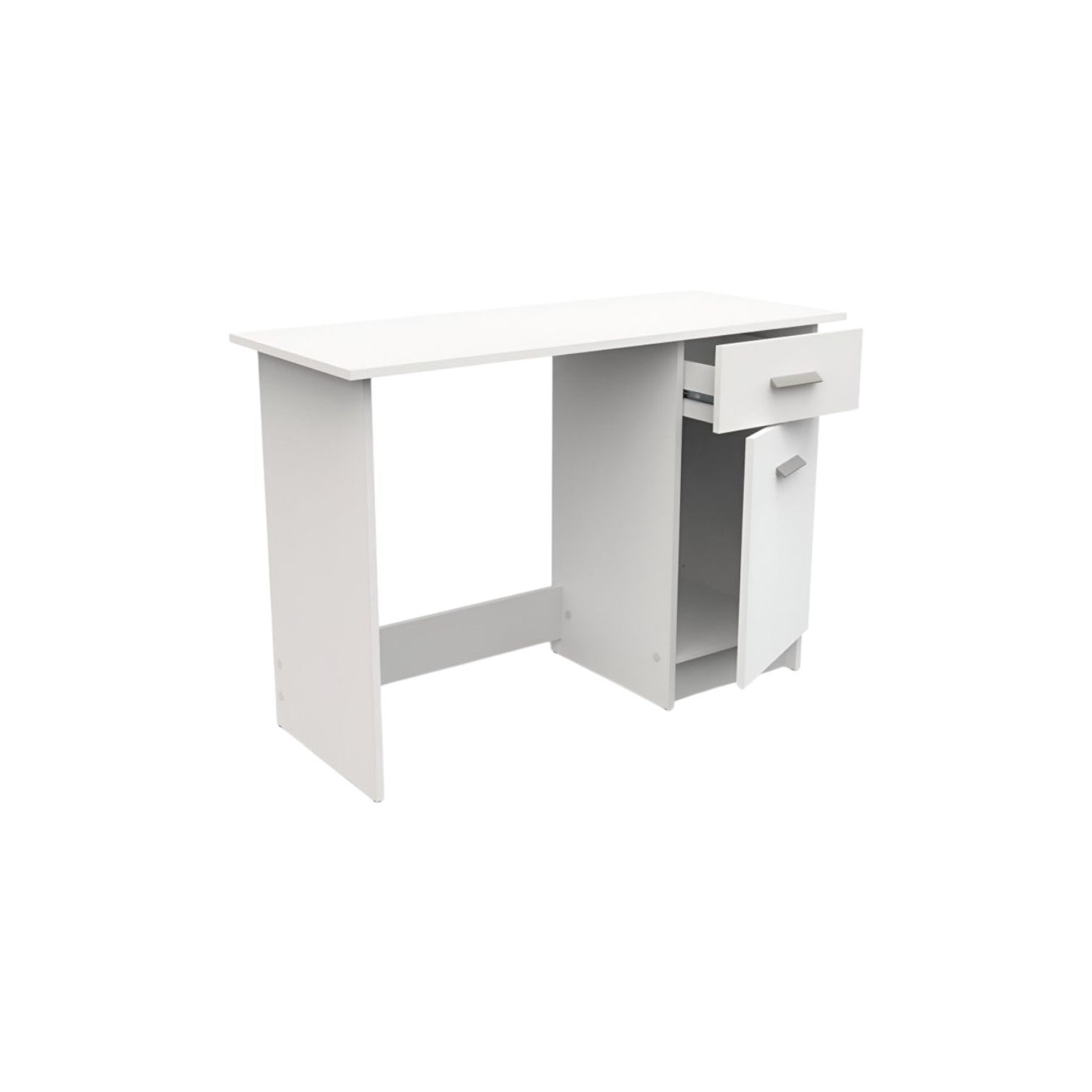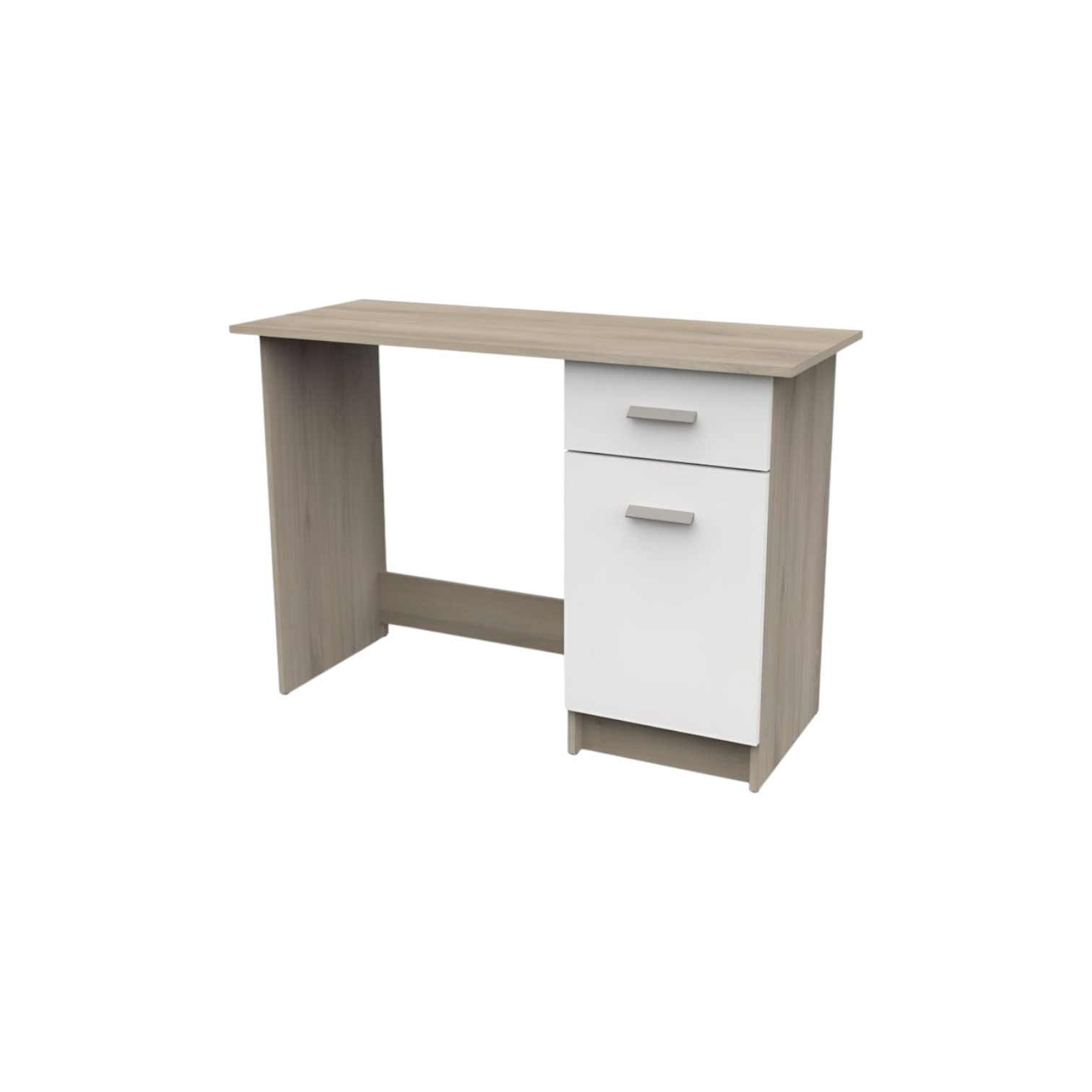 S jedne strane stola nalazi se jedna ladica na metalnim vodilicama za brzi pristup vašim stvarima. Ladica nudi koristan unutarnji prostor od 30 cm širine, 34 cm dubine i 10,5 cm visine, nosivosti do 2 kg, idealna za pohranjivanje manjih uredskih potrepština poput olovaka, bilješki ili elektroničkih naprava. Ispod ladice nalazi se dodatni ormarić koji nudi dodatni prostor za pohranu. Ormarić ima širinu od 33 cm, visinu od 48 cm i dubinu od 38 cm i pruža zatvoreni prostor u koji možete pohraniti veći uredski materijal ili osobne stvari bez pretrpavanja radne površine. Veličina stola je prikladna za manje prostorije, kućne urede ili radne prostore gdje je važna dobra iskorištenost prostora. Kompaktna radna površina dimenzija 108,4 x 45 cm pruža dovoljno prostora za vaše računalo, papirologiju i ostale uredske potrepštine. Ploča stola ima maksimalnu nosivost od 30 kg.