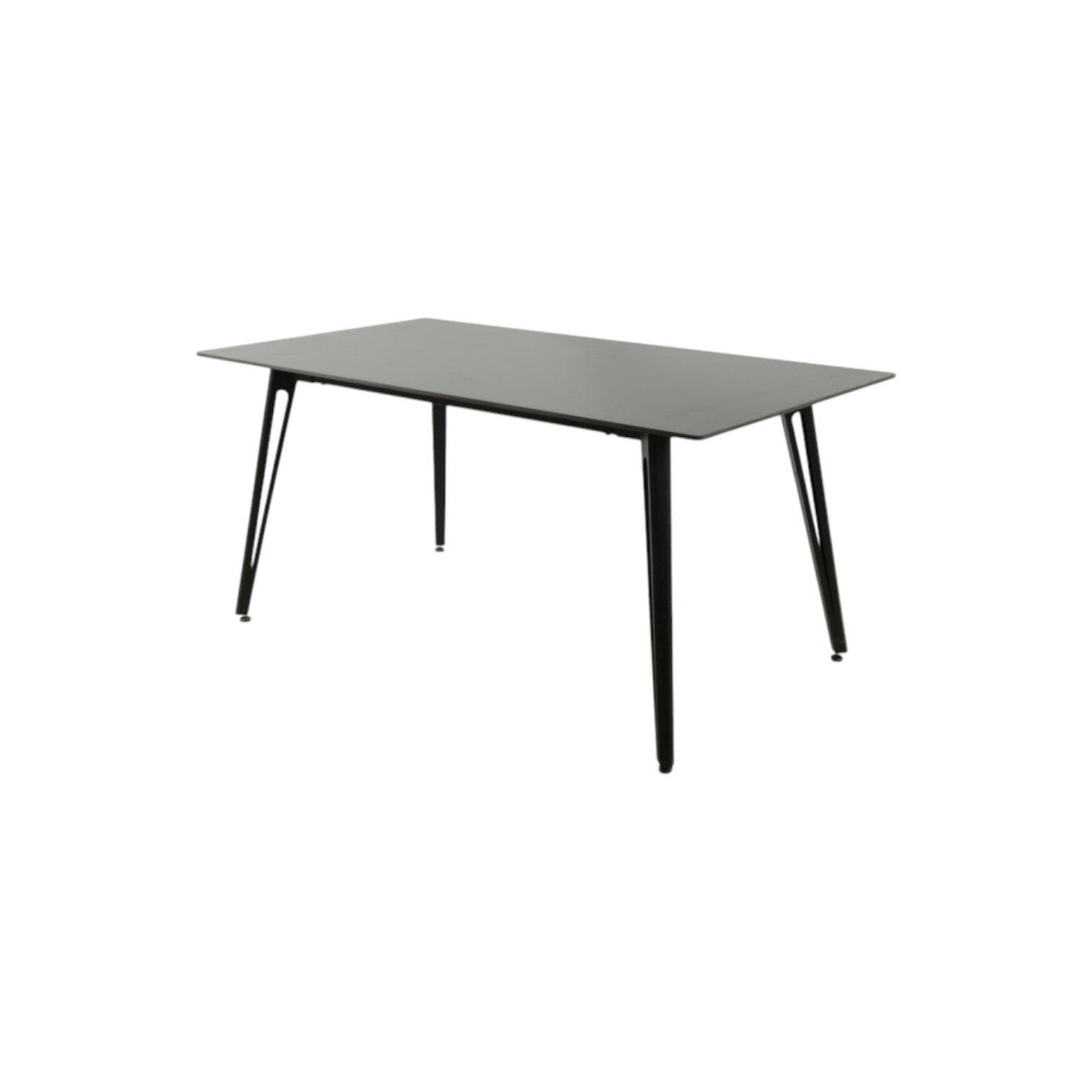 Blagovaonski stol Kleopatra je vrlo elegantnog izgleda, jednostavnih oblika i dimenzija prikladnih čak i za manje stanove. Ploča stola je izrađena od sive keramike, a postolje je metalno, mat crne boje. Dimenzije su 160×090 cm, visina stola je 75 cm.