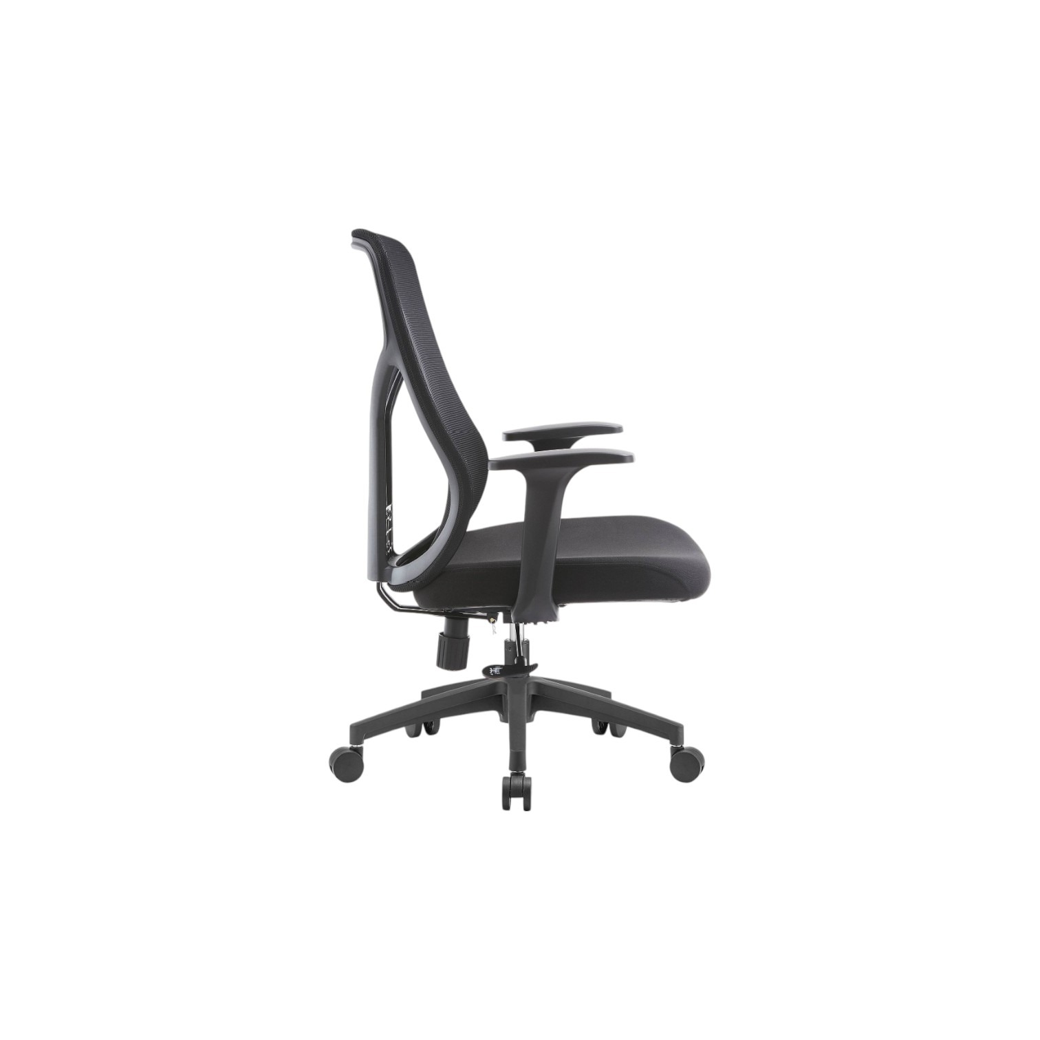 Stolica dolazi sa kotačima, integriranim naslonima za ruke u obliku slova T. Pored toga stolica posjeduje mehanizam za podešavanje visine, funkciju zaključavanja. Navlaka je izrađena od tkanine a mehanizam ima mogućnost nagiba naprijed i nazad. Stolica je crne boje.